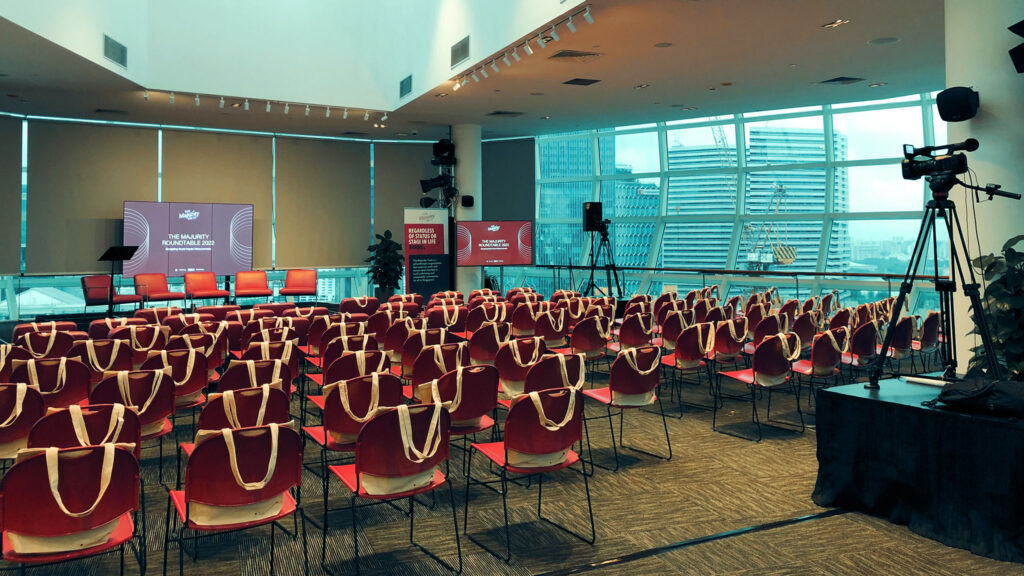 This setup is particularly ideal for seminars, such as cooking demonstrations, where it’s important for attendees to have a closer look at the action happening on stage and the performances taking place.