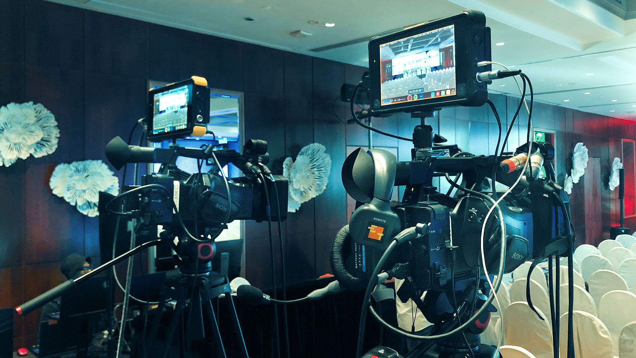 - Roving Videography: Our skilled video crew will move around the stage or ballroom, recording dynamic footage that captures the essence of your event. This footage can be played back in real-time on the large screens, enhancing the visual experience for the entire audience.