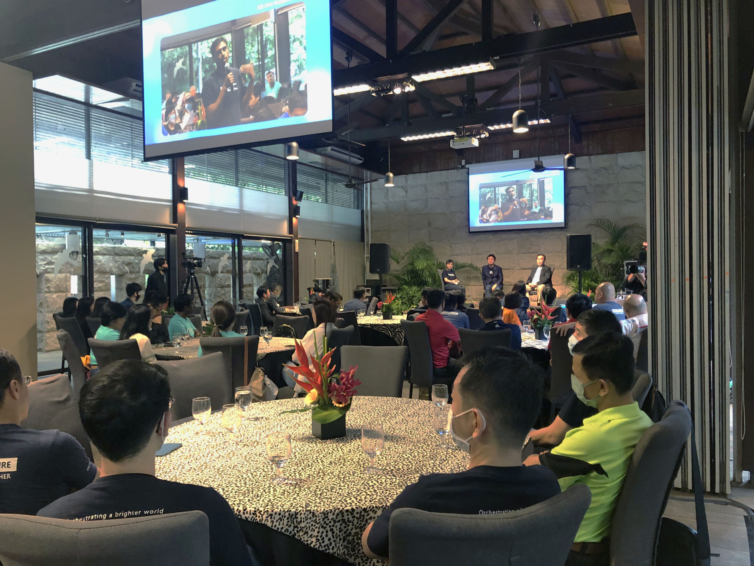 This setup is particularly ideal for seminars, such as cooking demonstrations, where it’s important for attendees to have a closer look at the action happening on stage and the performances taking place.